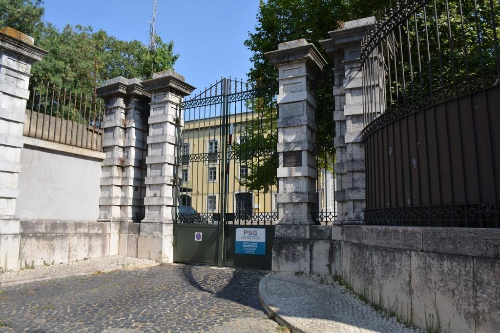 We walk into R. Tomás Ribeiro. Soon we arrive at a park on Praça José Fontana. On the other side of the park is the Liceu Camões, founded in 1910/11, which was innovative in that it had a gymnasium. Mens sana in corpore sano. We follow R Gomes Freire and after R. Bernardim Ribeiro we walk at the bottom of a hill with a wall and a high fence on top of it. Above it is the Hospital Miguel Bombarda. Running away is not only forbidden there, but also virtually impossible. It was a psychiatric institution.